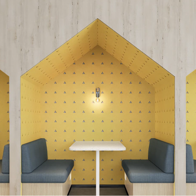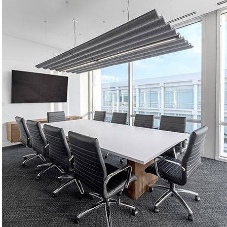 Paneles sin adhesivos diseñados para espacios interiores como oficinas. Los paneles acústicos son laminados de Pet grandes y resistentes, pero suaves al tacto.